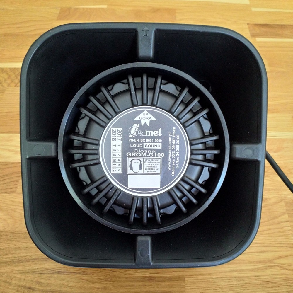 Wylot głośnika nie może być narażony na bezpośrednie oddziaływanie wody, np. na myjni - nie wolno kierować strumienia wody wprost na wylot głośnika. Umiejscowienie głośnika powinno również zapobiegać zamknięciu wylotu tuby śniegiem - grozi to uszkodzeniem urządzenia.