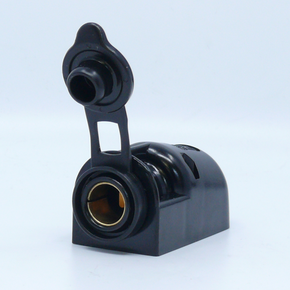 Nawierzchniowe gniazdo zasilające 12V - 24V. Przeznaczone do wtyczek uniwersalnych ⌀12 mm wykorzystywanych do zasilania lamp ostrzegawczych i urządzeń pomocniczych w samochodach osobowych, ciężarowych, przyczepach kempingowych lub łodziach.